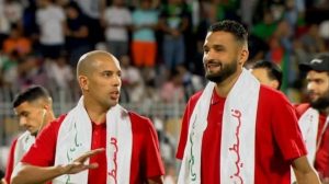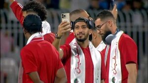 ودخل محاربو الصحراء ملعب “محمد حملاوي” قبل مباراتهم اليوم الأربعاء أمام الرأس الأخضر، مرتدين الوشاح الفلسطيني في إشارة إلى دعمهم القضية الفلسطينية.