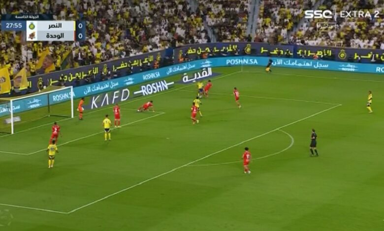 لاعبو النصر يطالبون بركلة جزاء امام الوحدة بالدوري السعودي