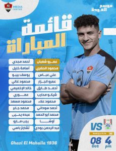 ويستضيف زعيم الفلاحين نظيره أبو قير، في إطار منافسات الجولة الثالثة من دوري القسم الثاني أ “دوري المحترفين”، في تمام الساعة الرابعة عصرًا، على ملعب “غزل المحلة”.