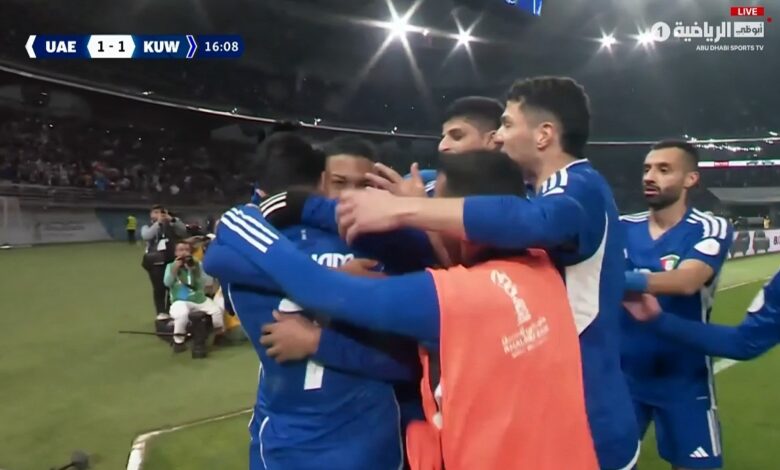 هدف تعادل الكويت مع الامارات (1-1) بعد خطأ من المدافع