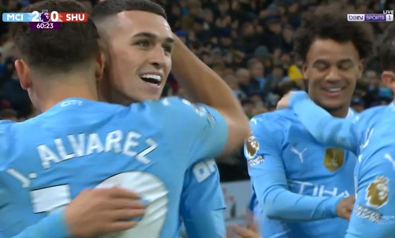 هدف مانشستر سيتي الثاني في مرمي شيفيلد يونايتد بالدوري الانجليزي