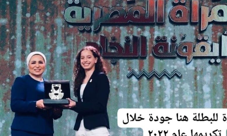 وكتبت السيدة انتصار السيسي: “سعيدة بالبطلة هنا جودة على هذا الإنجاز التاريخي كأول لاعبة مصرية وعربية وإفريقية تحصد ميدالية في بطولة العالم لتنس الطاولة تحت 19 سنة.. أتمنى لكِ مزيدًا من التميز والنجاح”.