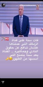 وانتقد أمير مايحدث لوالده المستشار “مرتضى منصور” الرئيس السابق لنادي الزمالك ” فات سنه علي القناة اللي عملناها عشان تدافع عن حقوق نادي الزمالك وجماهيره .. القناة بعد سنة بتمنع اللي اسسها من الظهور”.