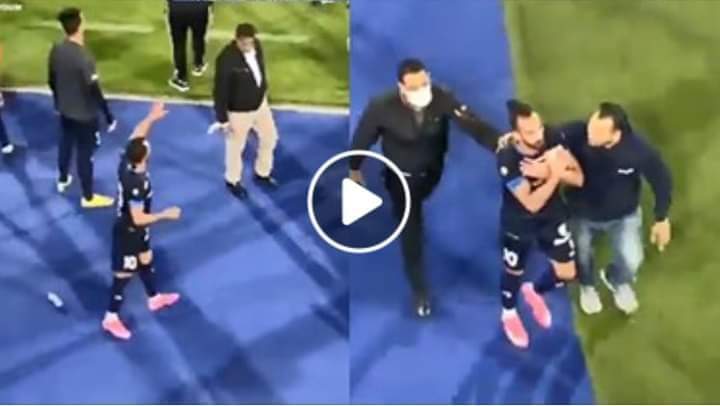 بالفيديو.. محمد طلعت يرفع نسر الأهلي ويبصق علي دكة الزمالك بعد طرده