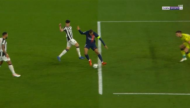مبابي كاد ان يسجل هدف رائع بالكعب امام نيوكاسل في دوري ابطال اوروبا