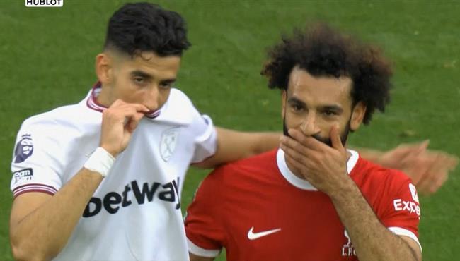 لقطة محمد صلاح ونايف أكرد في مباراة ليفربول ووست هام