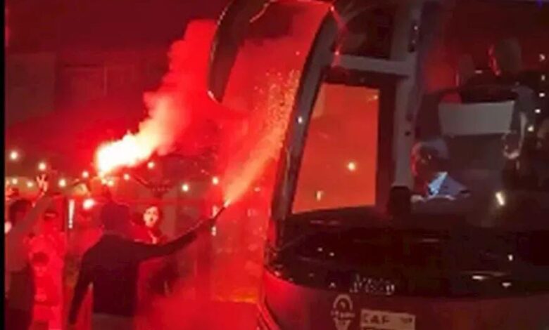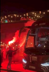 وأظهر مقطع فيديو بعثة المنتخب، بقيادة محمد صلاح نجم ليفربول الإنجليزي، وهم يتناولون العشاء وسط أجواء حماسية من الجماهير المغربية التي استقبلتهم بالشماريخ والتشجيع الحار