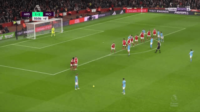 العارضة تحرم مانشستر سيتي من هدف امام ارسنال بالدوري الانجليزي