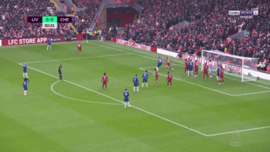 هدف تشيلسي الملغي امام ليفربول في الدوري الانجليزي