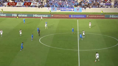 فرصة خطيرة من البرتغال علي مرمي ايسلندا بتصفيات كأس امم اوروبا