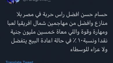 عرض المهندس فرج عامر، رئيس نادي سموحة، مهاجم الفريق الأول حسام حسن للبيع عبر تطبيق تويتر، حيث ذكر في تغريدته أنه لن يبيع حسام حسم بأقل من خمسين مليون جنيه إضافة إلى نسبة ١٠٪ من إعادة البيع المستقبلي إلى أي…