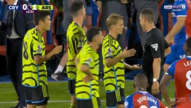 طرد تومياسو في مباراة ارسنال وكريستال بالاس بالدوري الانجليزي