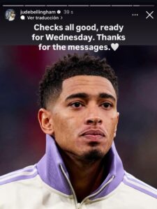 طمأن الإنجليزي “جود بيلينجهام” نجم ريال مدريد؛ جماهير الملكي بعد إصابته في مباراة فريقه الماضية.