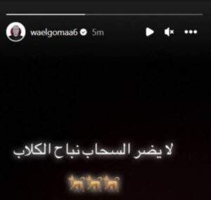ورد وائل جمعة عبر ستوري “إنستجرام” قائلا :”لا يضر السحاب “نباح الكلاب”.