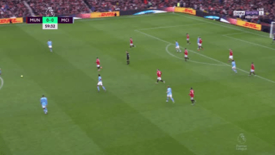 فرصة خطيرة من مانشستر يونايتد علي مرمي مانشستر سيتي في الدوري الانجليزي
