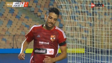 هدف طاهر محمد طاهر الثاني علي الطاير في مرمي سيراميكا كليوباترا
