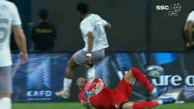طرد لاعب الطائي بعد تدخل قوي علي اوسبينا في الدوري السعودي