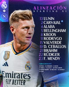 وأعلن “كارلو أنشيلوتي” المدير الفني لفريق ريال مدريد عن تشكيل فريقه لمواجهة اليوم كالتالي: