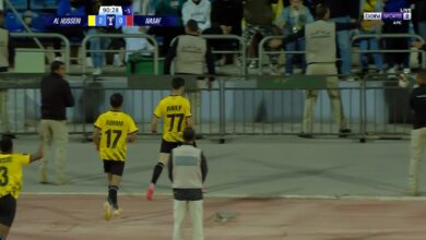 لاعب الحسين اربد يهدر هدف محقق بطريقة غريبة بعد خطأ فادح من حارس ناساف كارشي